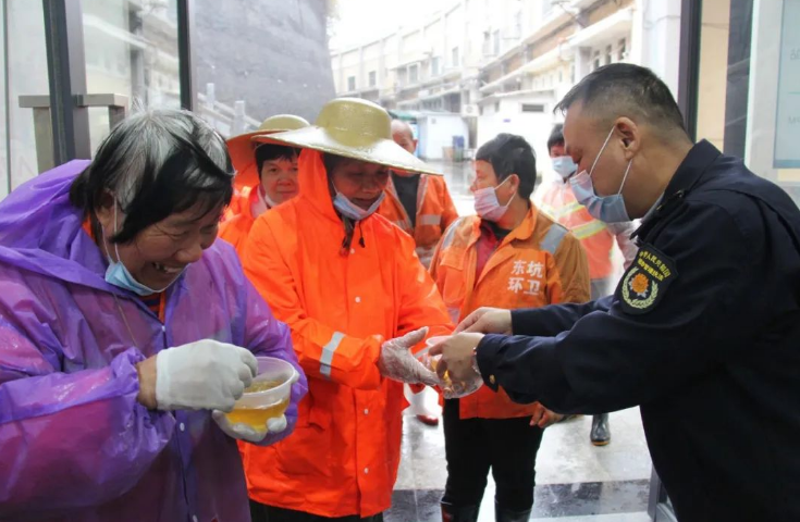 近日,东坑城管分局迅速行动,为镇内400多名坚守一线的环卫工人送上热气腾腾的姜茶和新雨衣。该送温暖活动分别在镇中心区城管驿站、东坑市场桥头街、环卫停车场三个点开展,对一些路段较远、不方便到温暖点喝姜茶的人员,东坑城管通过上路送温暖的方式,到作业路段为环卫工人送上暖心姜茶。