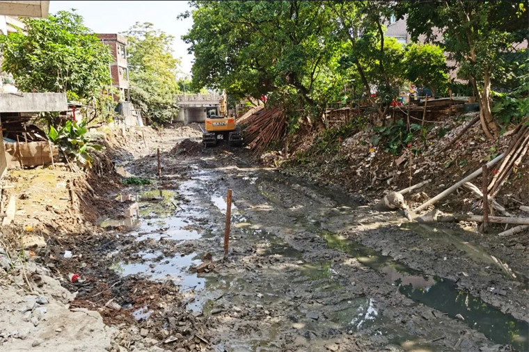 治理从源头抓起。万江工程建设中心联动属地社区,与村民协商拆除沿河违建;合理设计布局地下管网,铺设污水管道约380米,整治直排口23个;下大力气清理漂浮垃圾,开展河道疏浚整治,河涌清淤疏浚约2000立方米;完成河岸坡砌硬化,建设一河两岸走廊,拓宽村民活动空间,堤岸修复约400米;河岸边还加装了休闲石凳和安全防护栏杆。