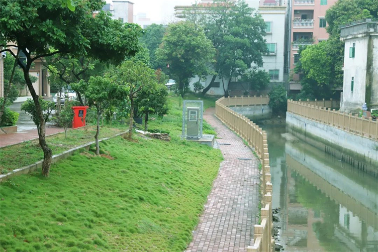 从见了绕路走,到“华丽转身”,如今河涌两岸平整的石堤、仿古的护栏、平坦的人行道以及绿化的草坪……俨然一座小型的口袋公园。
