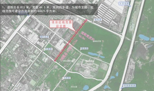 彩云路是城市支路,总长815米,宽度44.5米,双向四车道。