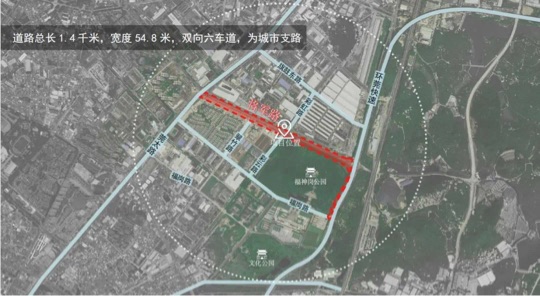 福岗路为城市支路,一期已于去年完成改造提升。二期总长763米,宽度31.8米,双向四车道。