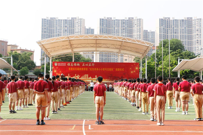 据了解,这是全市首支校园退役军人军号志愿服务队。石碣镇退役军人服务中心通过政校合作的形式,与石碣四海学校组建“红色传承小小军号志愿服务队”,利用“国旗班”资源,拓展军号志愿服务队伍,建立学校青少年国防教育基地。