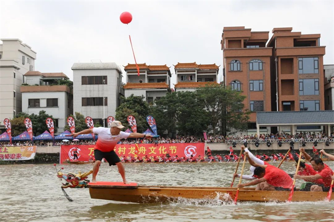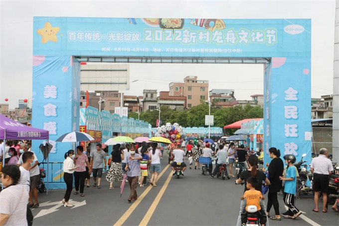万江民谚曰:“五月十四新村景”。作为每年“万江赛龙舟”的压轴大戏,6月12日,自发组织的38条龙舟齐聚新村河,参加游龙趁景“嘉年华”,轮番竞渡拔头筹。这是新村社区有史以来龙舟参与数量最多的一次龙舟盛事,场面浩大,气氛热烈,不少人不远千里奔赴这一场盛会。