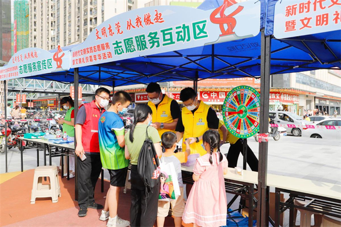 6月19日,“文明东莞 从我做起”新时代文明实践志愿服务暨文明礼仪嘉年华活动(石碣分会场)在合信·嘉荣购物广场举行,活动以开展垃圾分类宣传、“全民戴口罩”文明劝导、公益环保捡跑等方式,倡导文明健康绿色环保生活,引导市民养成良好行为习惯。