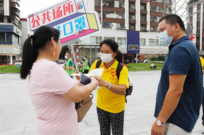 “出门戴口罩,防疫又防晒”“请大家遵守疫情防控要求,戴口罩,不扎堆,不聚集……”其间,志愿者等还在临街店铺等地,对不戴口罩和不规范戴口罩等行为进行现场提醒劝导,向未戴口罩的群众免费发放口罩,提醒他们科学佩戴口罩,做好勤洗手、常通风,不聚集,保持1米以上社交距离等防疫措施。小口罩传递大温暖,他们以实际行动进一步筑牢疫情防控安全防线。