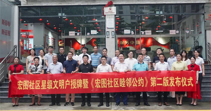 8月25日下午,由南城街道新时代文明实践中心指导,宏图社区党委主办的宏图社区星级文明户授牌暨《宏图社区睦邻公约》第二版发布仪式在雅园新村党群服务中心举行。活动旨在进一步弘扬睦邻友好manbetx安卓手机 、践行新时代文明、构建和谐家园,为南城建设高品质城市中心、打造东莞“首善之区”贡献基层力量。