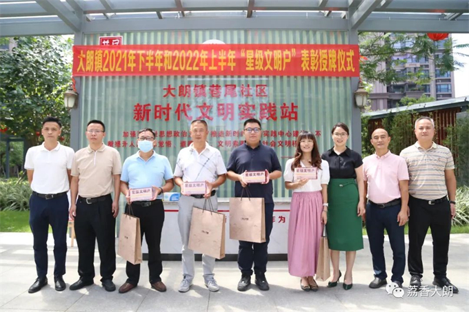 据了解,本次“星级文明户”评选活动经过广泛发动、村级推荐、群众评议、审定星级、综合考核等环节,共评选出84户家庭大朗镇“星级文明户”称号,本次评选含2021年下半年37户及2022年上半年47户。