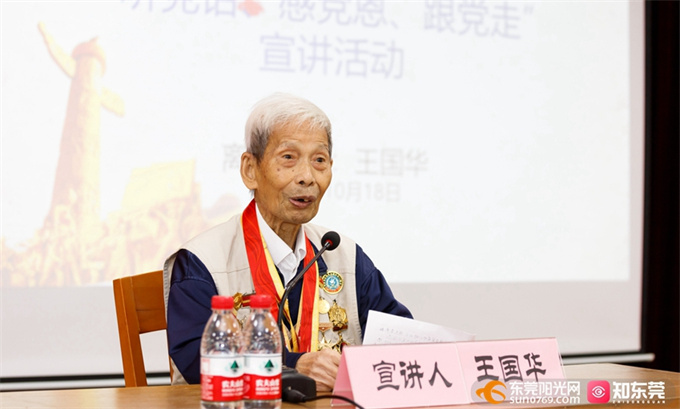 10月18日,莞城街道罗沙社区新时代文明实践站联合东莞市军休所举办“习近平新时代中国特色社会主义思想进罗沙社区——‘听党话,感党恩,跟党走’宣讲活动”,邀请现年96岁的退役军人王国华,分享军旅生涯,深入推进党史学习教育,厚植爱党爱国情怀。