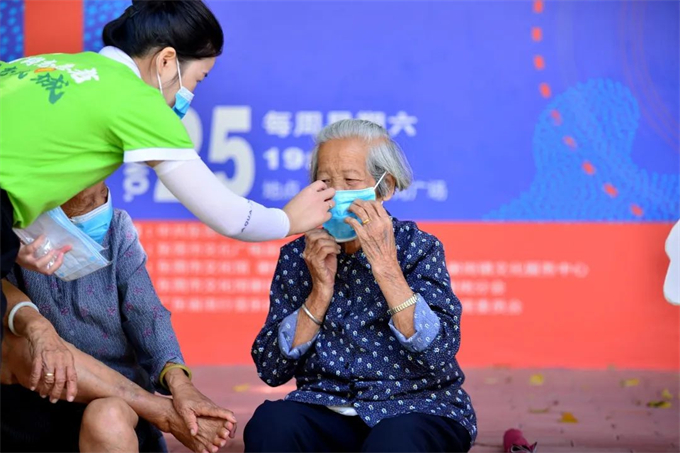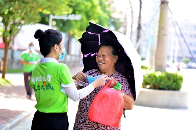 “您好,送您一只口罩,请您戴好。”“口罩请不要挂在下巴上,像我这样戴。”“小朋友出来玩也要戴好口罩哦!”志愿者们认真细致,遇到未戴口罩的群众,主动为他们送上口罩。发现少数居民口罩佩戴不规范的,志愿者们也会耐心加以劝导。尤其遇到长者、孩童时,志愿者都会悉心协助他们正确地佩戴口罩。