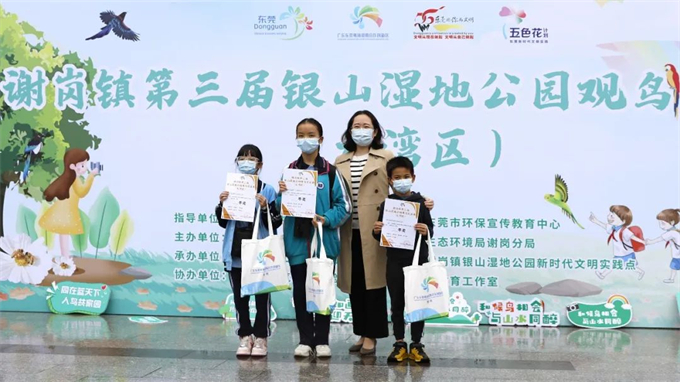 为深入学习贯彻习近平生态文明思想,加强广深莞惠城市间在生态环境保护领域的联系,搭建沟通和交流的平台,11月6日,谢岗镇第三届银山湿地公园观鸟交流赛(大湾区)在谢岗镇银山湿地公园举行。活动以“五色花计划——‘观’爱鸟类 绿色有约”为主题,20支来自大湾区中小学的观鸟队,共80多名学生和家长在银山湿地公园一起切磋观鸟技能,共同探讨观鸟知识,彼此分享观鸟乐趣。