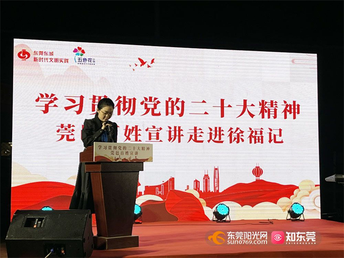 18点30分,学习贯彻党的二十大精神莞邑百姓宣讲首先拉开系列活动的序幕。来自东城街道莞邑百姓宣讲团成员、东城“河莞家”志愿者河长驿站特聘自然导师赵婉韵给广大企业员工上了题为《日常小行动 降碳大作为》的讲座。她结合党的二十大精神内涵,以通俗易懂的百姓故事微宣讲形式,推动党的二十大精神在东城企业落地生根、结出丰硕成果,以先进思想引领企业员工坚定信心跟党走、努力奋进新征程。