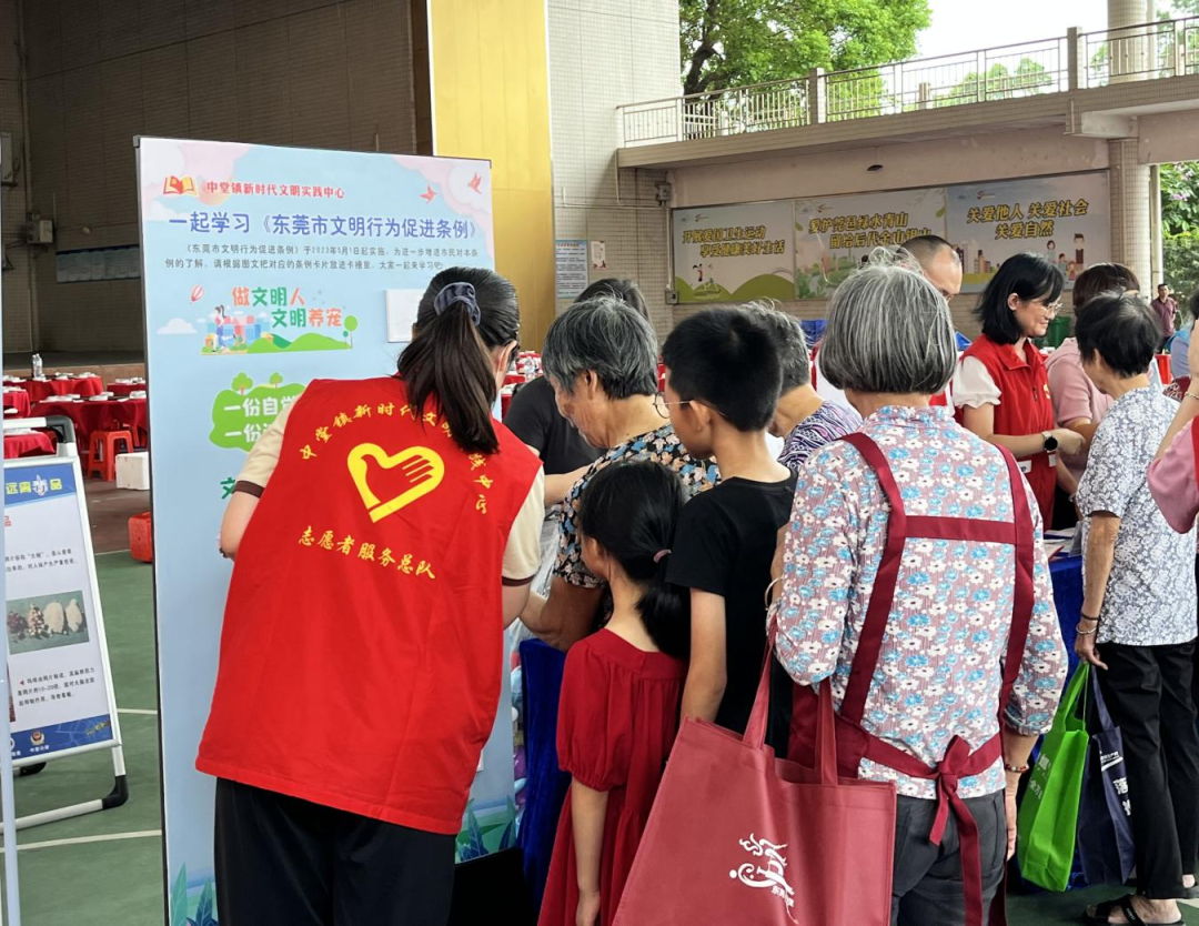 期间,文明实践志愿者利用宣传摊位,开展了《东莞市文明行为促进条例》宣传活动,以互动游戏的形式,加深群众对条例的理解,进一步呼吁他们将条例融入到日常工作生活中,以身作则,讲文明、树新风,争做文明传播的使者。