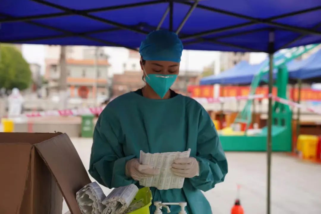 2月27日,企石镇开展全民核酸检测工作。林丽云是企石医院体检中心的一名工作人员,负责在核酸检测点物料补给和人员轮换等工作。