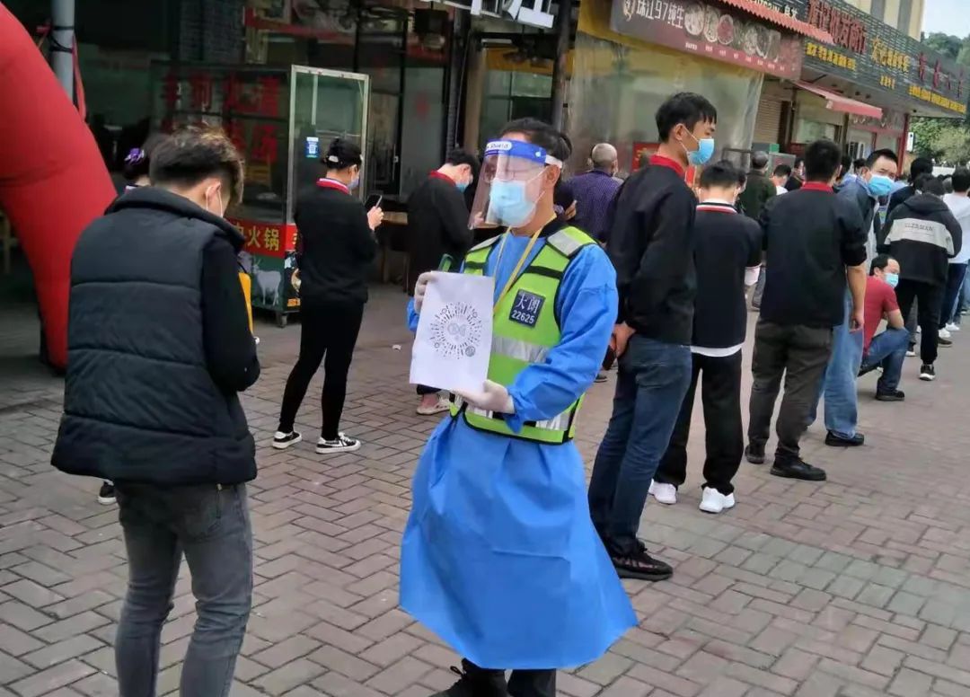 从2月25开始,邓伟峰晚上住在公司,白天就在核酸检测点开展志愿服务。如果一个核酸检测点的群众少了,邓伟峰就到其他的核酸检测点去继续协助。