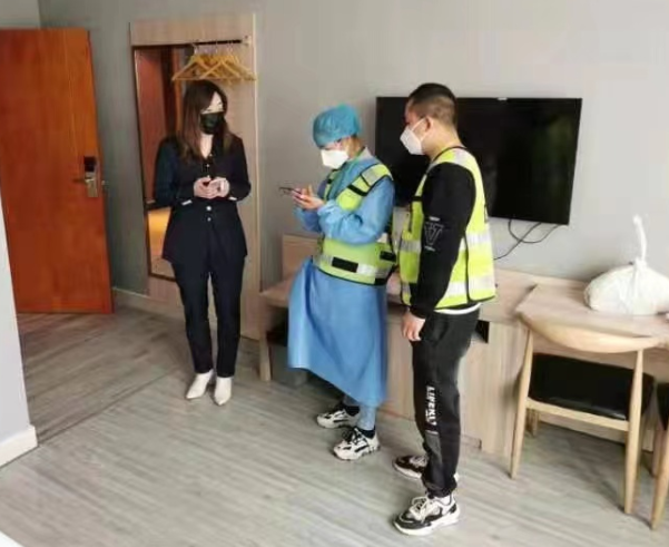 虽然错过了这次机会,但她并未忘记自己想出力的初衷。不久后,她在群里得知有三名义警身在核酸现场进行着工作,但住在封控区域内,处于“有家不能回”的状况。在看到消息后,她立刻与酒店老板说明情况,建议酒店提供几间免费的房间,直到疫情结束,封控解除。