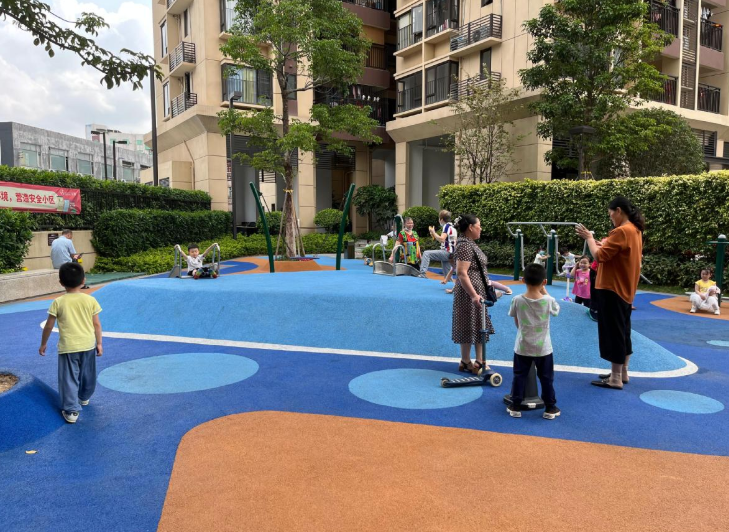 这样的情况不在少数,记者看到,不少家长在带娃时自己戴着口罩站在一旁玩着手机,而孩子则聚集在一起玩耍,均未佩戴口罩,而在物业人员的提醒下,一旁的大人才慢悠悠地从口袋里掏出口罩给孩子带上。
