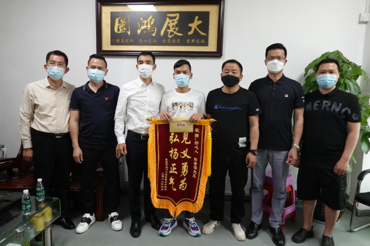 随后,虎门个私协会将“弘扬正气,见义勇为”的锦旗及慰问金送到陆崇深手中,对他跳入河中救人的行为给予褒扬。