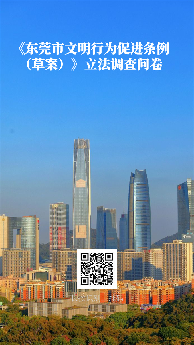 为大力培育和践行社会主义核心价值观,不断提升东莞市民文明素养和社会文明程度,深化文明城市创建工作,有力推动千万人口与城市深度融合、共生共荣,按照科学立法、民主立法的要求,市文明办牵头设计了《东莞市文明行为促进条例(草案)》立法调查问卷,今起至2022年6月30日期间通过网络广泛征求各界市民的意见和建议。