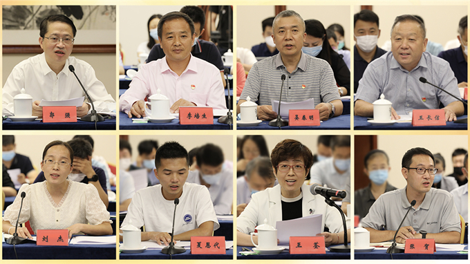 座谈会发言照片:安徽省委常委、宣传部部长郭强,“中国好人”代表李培生、晏春明、王长信(上排从左至右);“中国好人”代表刘杰、夏恩代,“中国好医生中国好护士”代表王荃,媒体记者代表张贺(下排从左至右)。(刘鲲鹏 摄)