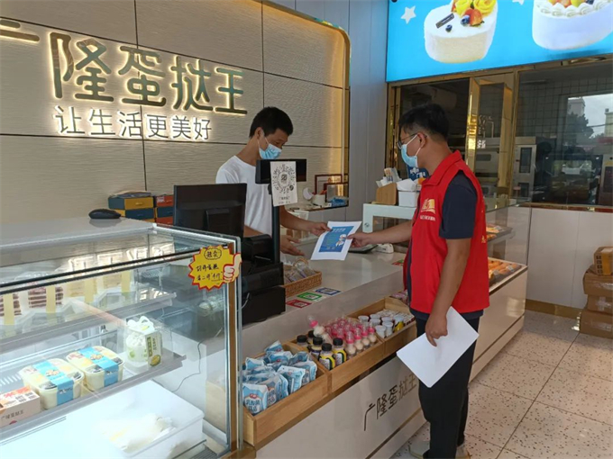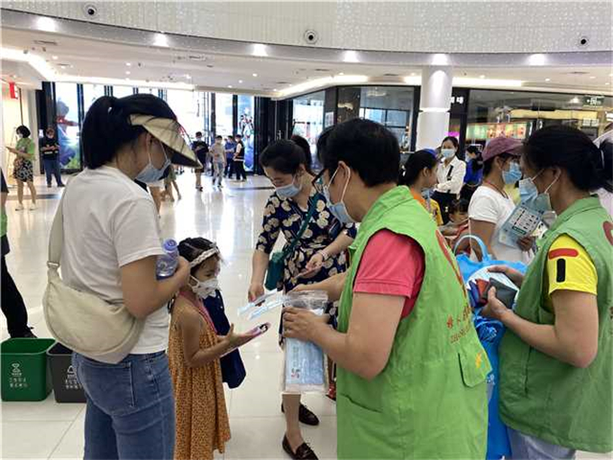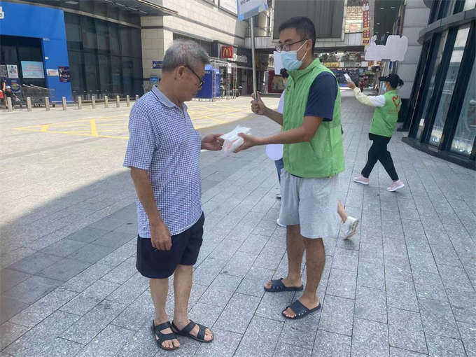 活动中,志愿者手持宣传牌在商场周边,向没有佩戴好口罩的市民派发免费口罩,并耐心讲解佩戴口罩的重要性及佩戴口罩的正确方式,同时提醒市民不扎堆、不聚集,保持安全社交距离,时刻注意个人防护;有的志愿者走进商铺提醒店员要严格落实测温、扫“场所码”等防控措施,提醒进入的市民群众正确戴口罩,更要做好个人防护,做好自己健康的第一责任人。