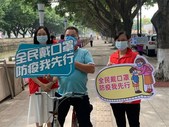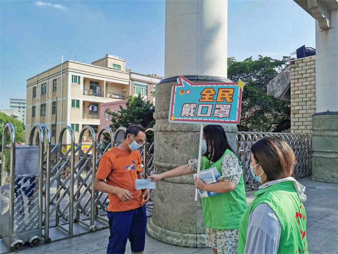 在活动中,志愿者们高举“全民戴口罩”的宣传标语牌,防疫“小喇叭”走街串巷,对未佩戴口罩的群众进行劝导并免费派发口罩,居民对“全民戴口罩”宣传劝导志愿服务活动表示赞同和认可。