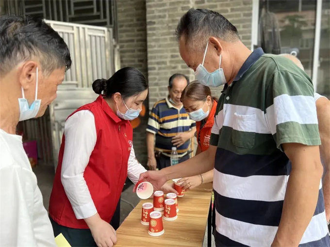 近日,黄江镇新时代文明实践中心联合黄江镇三新社区在黄京坑村喜庆堂开展“我们的节日”中秋游园会。灯笼、游戏、拉家常,丰富的玩法,有趣的活动,不仅让老人们提前体验喜庆、欢乐的中秋佳节,也进一步增进了社区老年人互动交往,做到“邻里一家亲”。