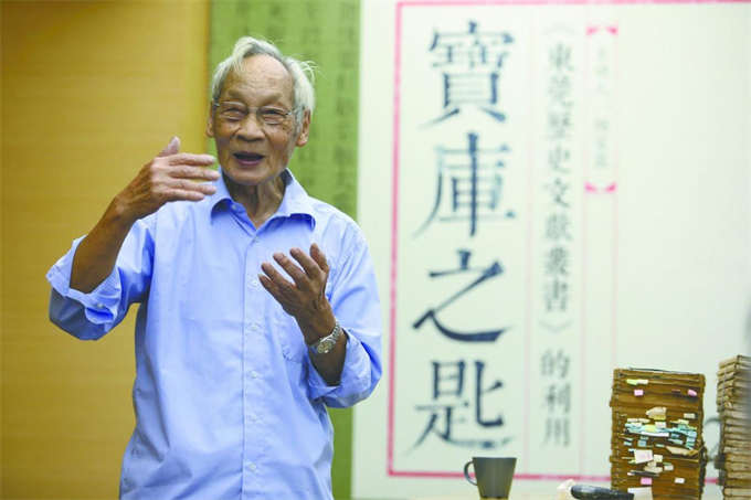 2018年,杨宝霖在《东莞历史文献丛书》首发式上作介绍。(摄影:郑志波)