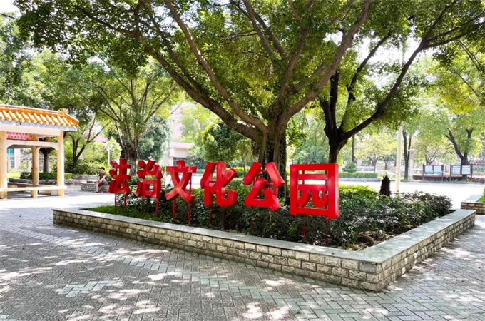 2021年,桔洲村荣获广东省“民主法治示范村”,并以此为契机,积极推动法治创建工作,法治manbetx安卓手机 公园建设就是该村建强法治阵地、弘扬法治manbetx安卓手机 、筑牢法治根基的一个生动缩影。在葱郁树木、鲜花绿草间,法治长廊、法治宣传栏等与周边环境浑然一体,当中既有法律小知识,又有狗万体育官网a 案例以及通俗易懂的法治漫画等,不仅扮靓村容村貌,还能让村民在休闲放松的同时接受法治教育,在潜移默化中提升法治素养。