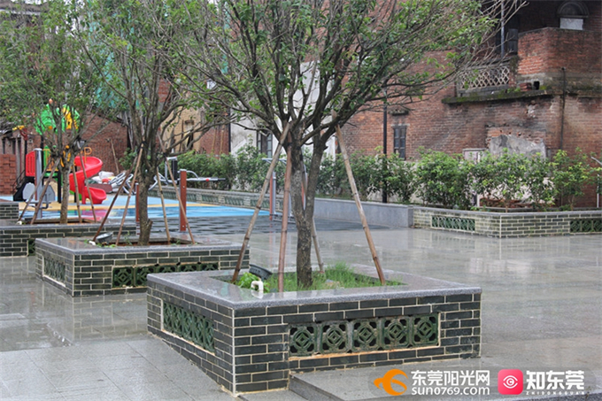 在道滘镇大岭丫村马嘶塘村口,道路旁边已建好了小公园,里面设置了儿童游乐区、休闲区等,有不少家长带着小孩前来游玩,享受快乐时光。街坊介绍,这里原来是闲置地块,经过升级改造,闲置地建成了小公园,村容村貌焕然一新。