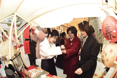 市民陈女士说,第一次体验非遗编绳结艺,觉得妈妈集市的传统manbetx安卓手机 氛围很浓。“这里既可以让孩子体验传统manbetx安卓手机 、增强动手能力,还可以全身心投入亲子互动交流中,感觉非常好。”经过两个多小时的努力,母女二人合力完成了红色手链编织。“戴自己编好的开运手绳,是对新春最好的祝福,仪式感满满。”陈女士说。