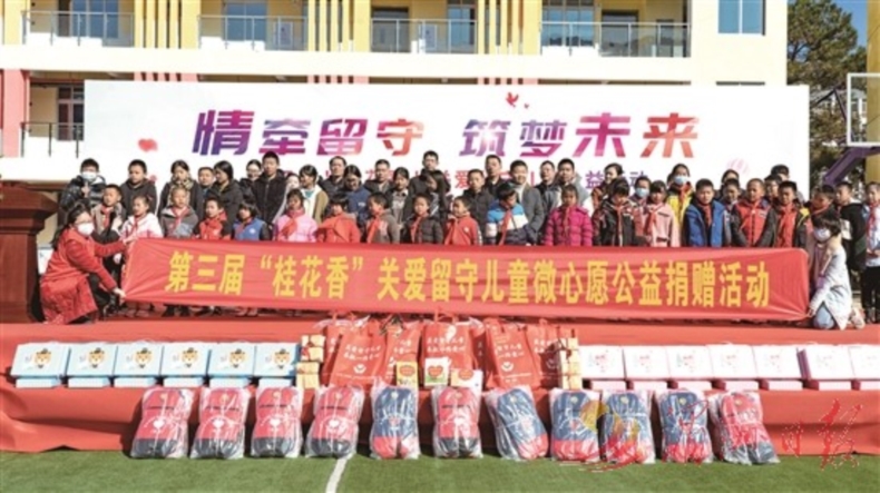 莆田文明网2月2日讯 吴美珍)为进一步加强对留守儿童的关爱,1月24日,仙游县关心下一代工作委员会、共青团仙游县委员会、仙游县妇女联合会、仙游县教育局、仙游县红十字会、仙游县邮政分公司以及10家爱心企业(单位)、4位爱心人士走进仙游县菜溪承璜第二学校,开展“情牵留守 筑梦未来”第三届“桂花香”关爱留守儿童公益捐赠活动,为55名留守儿童送去暖冬礼物。