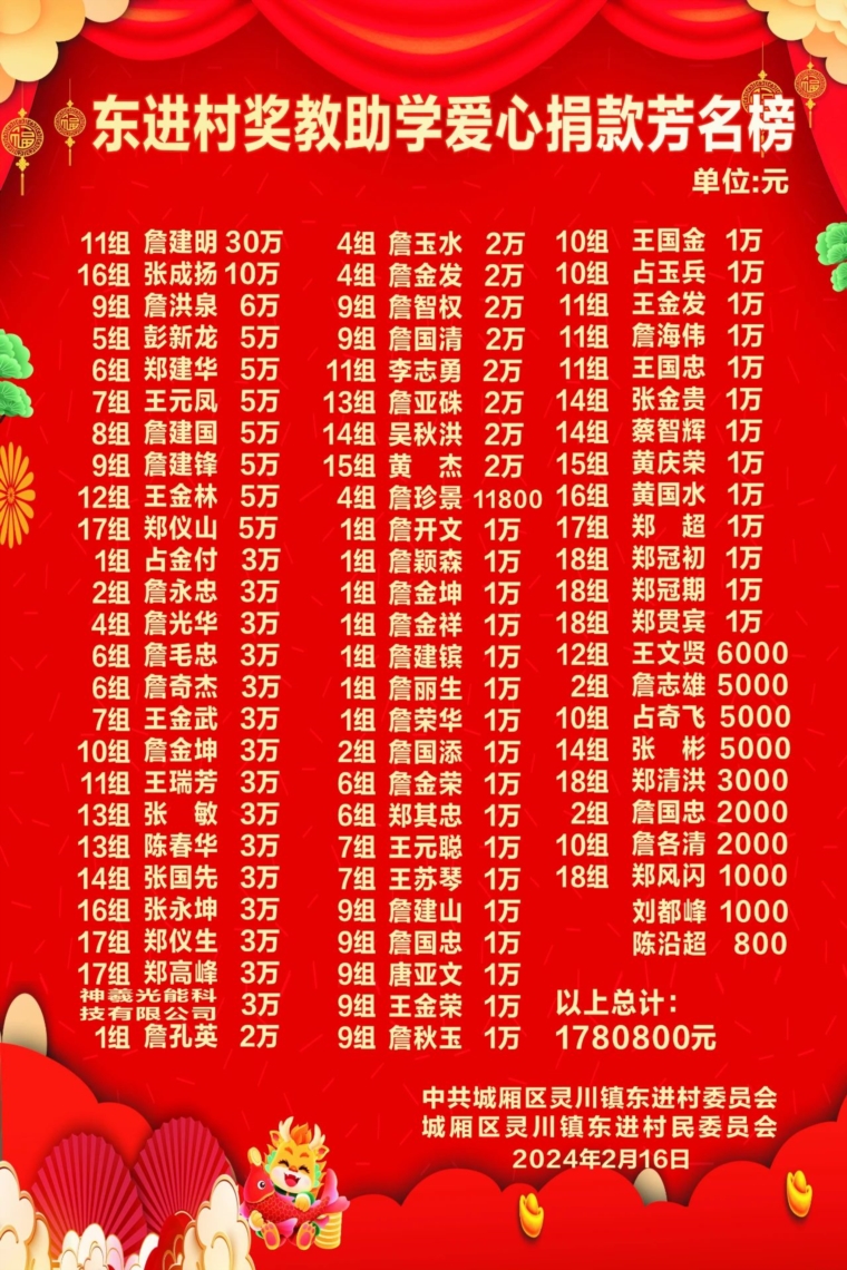 现场,该村乡贤慷慨解囊,鼎力支持家乡教育事业。乡贤詹建明带头认捐30万元。在其带动下,各乡贤纷纷认捐,共筹得捐款178.08万元。