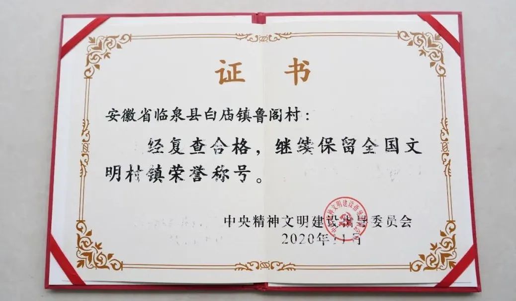 鲁阁村深入推进农村精神文明建设,先后获得第六届全国文明村、安徽省文明村、安徽省美丽乡村示范村、安徽省生态文明村等荣誉称号。