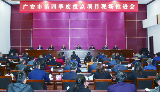 按照市委“每季度召开一次重点项目现场推进会,一线解决问题、推进工作”部署,11月14日下午,我市举行第四季度重点项目现场推进会暨重大招商引资项目集中开工仪式。市委书记李建勤出席,对打赢收官之战发出总动员,他强调,全市上下要深入贯彻党的十九届四中全会精神和省委书记彭清华在广安调研时的重要指示精神,找差距、补短板,鼓干劲、抓落实,主动作为,奋力冲刺,打好收官之战,推进广安经济高质量发展。市委副书记、市长曾卿主持会议。市人大常委会主任余仪等出席。