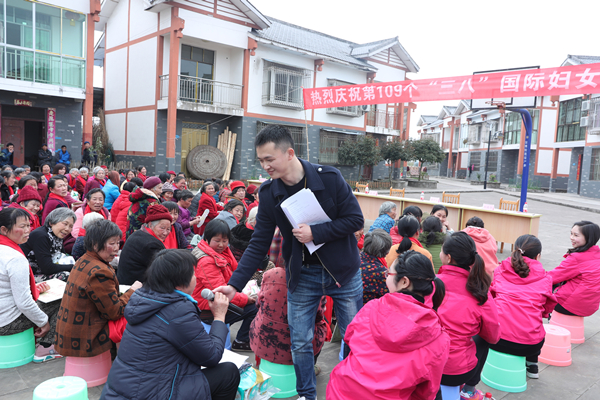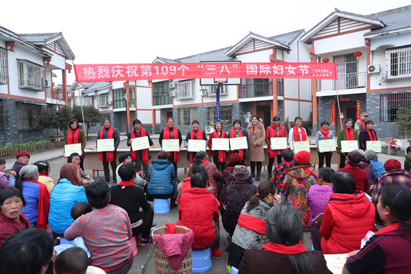 当日,为庆祝建国70周年和109个“三八”国际妇女节,推进巾帼脱贫奔小康行动和“转观念、转作风、提能力、抓落实”“两转一提一抓”活动, 通过驻村第一书记白晓华牵线搭桥,四川省广安市广安区公共资源交易管理服务办公室7名女职工专程来到结对帮扶的贫困村肖溪镇菱角村与当地农家女一道开展“城乡联动手拉手 贫困村里庆‘三八’”主题实践活动,通过组织农家女一起参加插秧、同心鼓、踢毽子等比赛和脱贫攻坚知识抢答赛,让农家女树立自尊、自强、自信、自爱的追求,在通往新时代美好生活道路上充分发挥女性半边天作用,助推该村2019年成功脱贫摘帽。广安区人武部、妇联、肖溪镇负责人出席菱角村“三八”庆祝活动,并为该村文明卫生家庭、三八红旗手颁奖,鼓励贫困村女性加强学习、争当模范、提升自我。