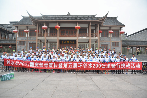 10月1日,邻水县禁毒办联合邻水县自行车骑行俱乐部开展了以“健康人生、绿色无毒”为主题的大型骑行禁毒宣传活动。