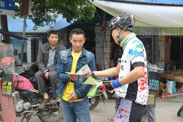 本次活动共130名资深骑行爱好者参与,活动主题为“健康人生、绿色无毒”。10月1日8时许,骑行队伍在邻洲广场集结后出发,主要沿邻水县主要交通干道行进,途经27个乡镇,200余公里。骑行队伍每经过一个乡镇都要在人员密集地段发放禁毒宣传单,宣传禁毒知识,讲解毒品的种类及危害,发动群众自觉抵制毒品侵害。本次活动共发放禁毒宣传单30000余份,受教覆盖面达10万余人。