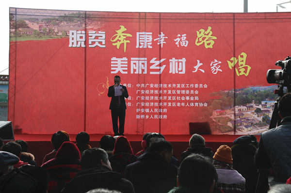 为丰富广大群众精神manbetx安卓手机 生活,不断提高人民manbetx安卓手机 素质,激发全民manbetx安卓手机 自信,大力宣传党的十九大精神,展现全区脱贫攻坚新成就,由经开区党工委、经开区管委会主办,社事局承办的“脱贫奔康幸福路 美丽乡村大家唱”manbetx安卓手机 惠民演出于2017年12月21日下午2:30分在新桥乡拉开帷幕。