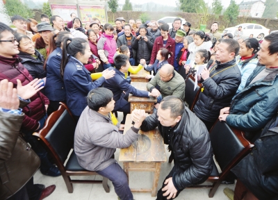 1月19日,在广安区杨坪乡双石村,干部群众以开展趣味活动的方式迎接新春佳节的到来。