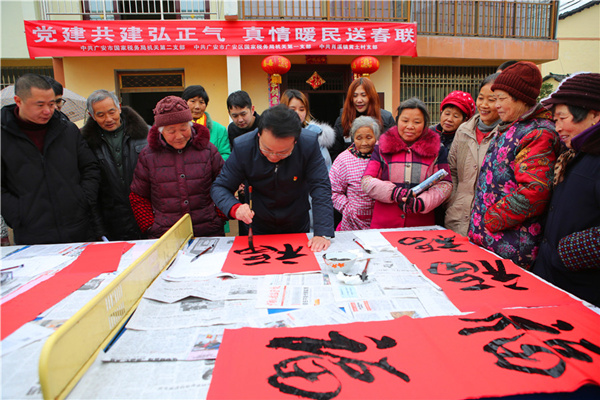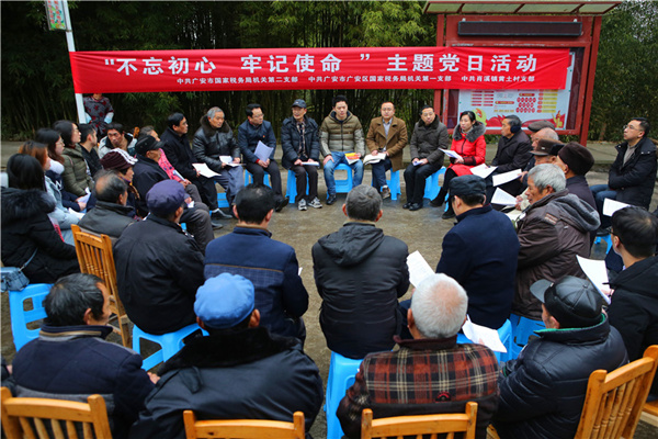当日,广安市国税局机关二支部、广安区国税局机关第一支部与结对帮扶的贫困村、广安区肖溪镇黄土村支部联合开展“不忘初心牢记使命”主题党日活动,通过同上党课、分享十九大精神学习体会、同温入党誓词;机关党员现场书写赠送春联、福字;义务为村民拍摄全家福、走访慰问特困户等方式让党员受到党性教育,提振为民服务、振兴乡村精气神,接地气惠民生。(廖小兵 周艾琳 唐素珍)