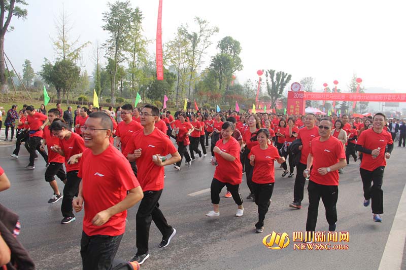 10月17日上午,以“激情红马?魅力蓥城”为主题的“2018广安国际红色马拉松赛?华蓥市分站暨重阳节老年人健步走活动”在华蓥市城北公园激情开跑。来自华蓥市内外的2300余名跑者相聚红岩故里,诠释马拉松运动精神,歌颂伟大时代,庆祝改革开放40周年。