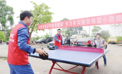 电力志愿者辅导留守儿童练习乒乓球。