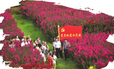 禄市镇海棠博览园党员业主李天云现场讲授紫薇花培植技术。