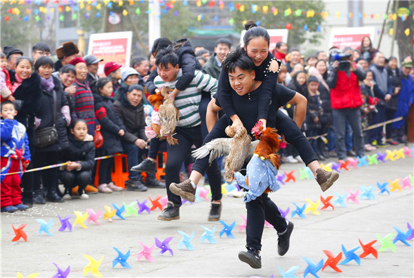 四川省华蓥市庆华镇举办返乡民工趣味活动“背媳妇”比赛,来自全镇15个行政村的决赛选手参加了总决赛。该活动旨在增进乡邻间的友情,融合返乡民工夫妻间的感情,在欢乐中迎接新春佳节。