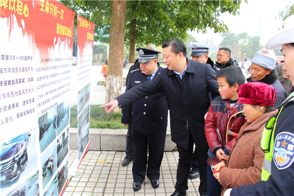 启动仪式结束后,刘俊、罗诚等领导在交警大队长唐刚陪同下,深入陆游广场春运宣传点和高速公路万寿收费站执勤点检查督导春运工作,亲切慰问了执勤民警和辅警。