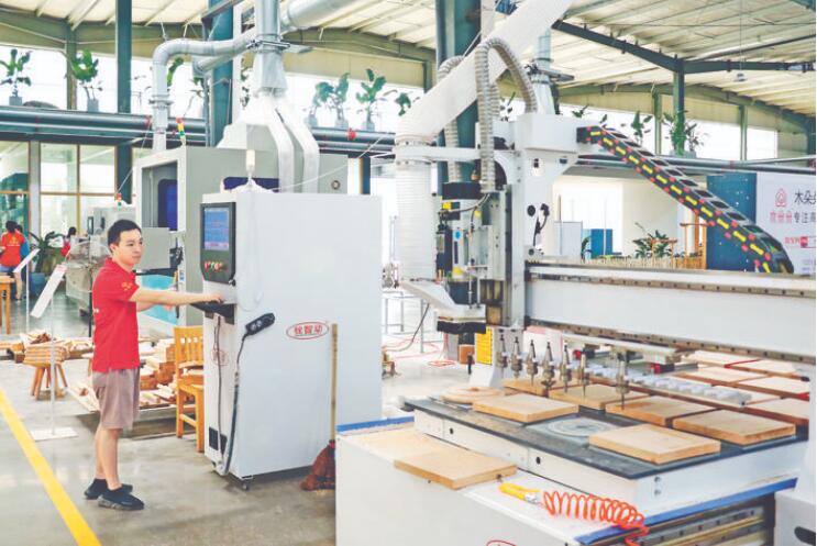 日前,记者在位于前锋区智能家居产业园的掌木家具有限公司生产车间看到,工人们正在生产线上忙碌着,经过锯料、拼板、砂光、出榫、组装等工序,一件件家具成品顺利下线。