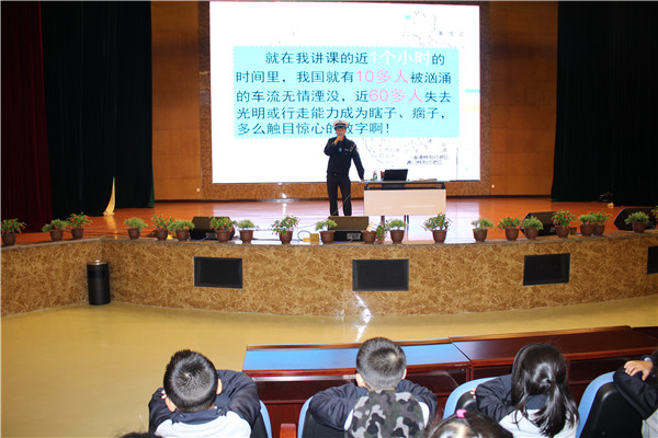 在上交通安全课前,民警深入学校,广泛征求学校领导、老师的意见,听取学生对道路交通知识了解情况。根据年龄特点,收集学生容易发生的交通违法行为,3起涉及学生的交通事故、学生中存在交通安全模糊认识、相关法律法规,精心做好课前准备,制作课件。采取边观看幻灯图片边讲解的方式,讲解交通安全出行常识,告诫广大学生遵纪守法、安全出行、文明出行;要求学生横过公路要走人行横道线,遵守交通信号灯,不得在马路上嬉戏打闹;未满12岁不能骑自行车上路;符合骑自行车年龄段的学生,骑车时不载人、不并排行走,不接打手机;有非机动车道要在非机动车道行驶,无非机动车道尽量靠边行驶;正确识别、拒绝乘坐安全隐患车,确保自身交通安全;播放发生在广安城区的3起涉及学生的交通事故视频,一边播放一边剖析违反交通法规行为及其酿成的后果,使参加聆听讲座的师生目睹未遵守交通法律的危害,牢固树立交通安全意识,从小就当一个交通安全义务宣传员。