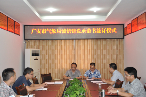 为进一步提高全局职工诚信意识,营造浓厚的诚实守信社会舆论氛围,形成诚实守信的社会风尚。近日,广安市气象局组织局属各事业单位开展了签定诚信服务承诺书活动。