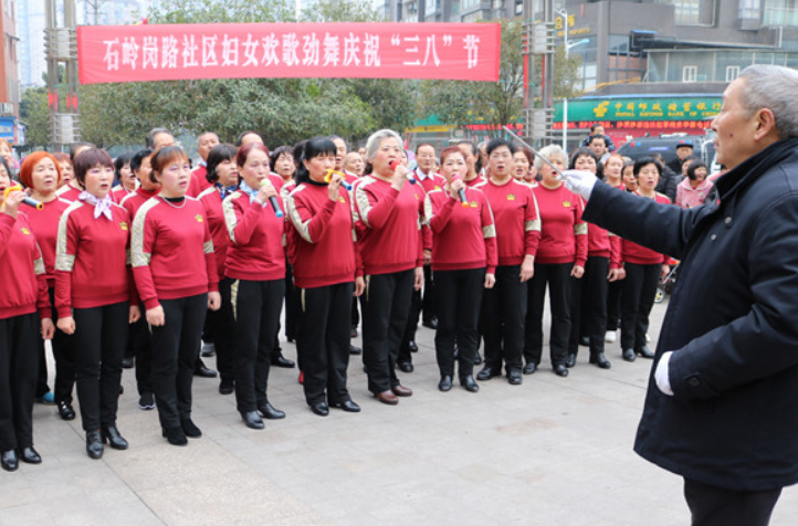 2019年3月5日,四川华蓥市双河办事处石岭岗社区的2000多名妇女,在御景花园举办了以“弘扬传统美德,树立良好家风”为主题的庆祝“三八”国际妇女节活动。社区文艺队展演了《没有共产党就没有新中国》、《中国梦、我的梦》、《魅力四川女》等10多个文艺节目, 展示了新时代妇女的风采。