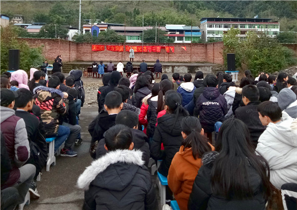 为纪念“12?9学生爱国运动”83周年,激发广大学生强烈的社会责任感和历史使命感,培养学生以爱国主义为核心的民族精神。2018年12月7日,华蓥市溪口初级中学400余师生,冒着寒风,在学校操场举办了“我为祖国点赞”暨以“ 传承爱国精神、谱写青春赞歌”为主题的演讲比赛。来自全校10位选手参加了比赛。